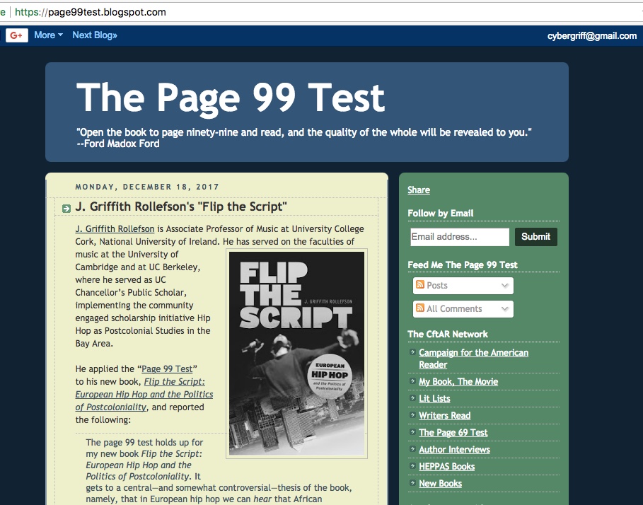 This just in! Marshal Zeringue has featured my book Flip the Script over at his blog Campaign for the American Reader. I’ve also written a short piece for The Page 99 Test, which posits the magical axiom “Open the book to page ninety-nine and read, and the quality of the whole will be revealed to you.” Turns out it works pretty well for my book — and happens to be about M.I.A. and what I call “the authentically inauthentic.” I explain it here.