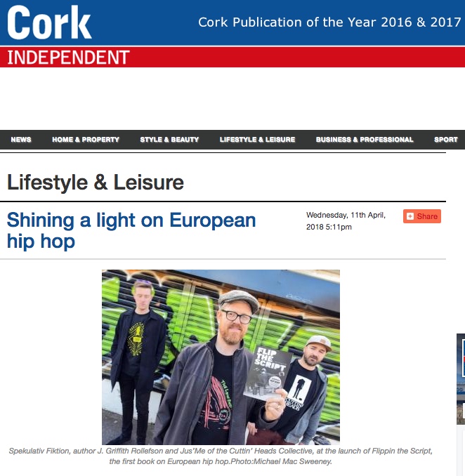 Griffith Rollefson will launch ‘Flip the Script: European Hip Hop and the Politics of Postcoloniality’, the first book on European hip hop in The Roundy on Friday 6 April from 8.30pm until late. Open to the public, the event is set to feature readings and videos from the author, European and Irish DJ sets from DJ Jus’Me, and live sets from Dublin hip hop legend Costello, Cork mainstay Spekulativ Fiktion, and local up-and-comers from GMC’s Music Generation Kabin crew, Gatch + Pacino Brady.