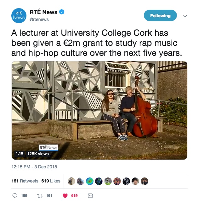 After the ERC award was announced Paschal Sheehy of the RTÉ Nightly News contacted me to see if he could do an interview with local artists. GMC got some of the youth together from the Kabin Studios in Cork City on short notice, I took my bass up, and we had a blast filming. Listen to Gatch and Mercedes get their chat on — seriously wonderful stuff… and wonderfully serious stuff. Check it: